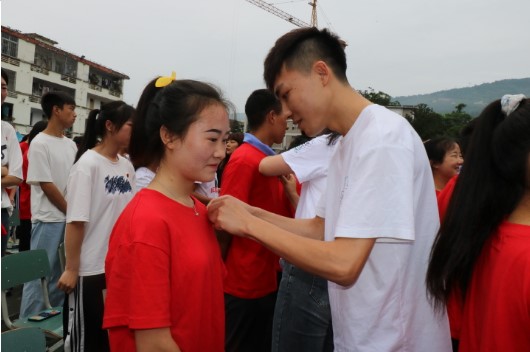 企业代表、师长代表为学子佩戴成人徽章