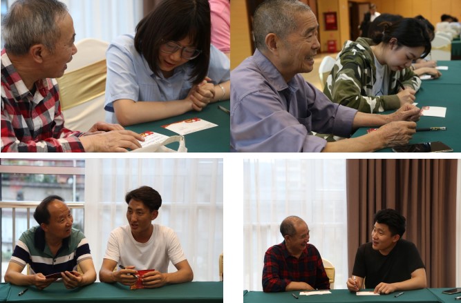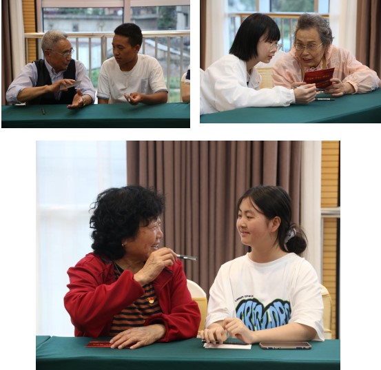 在开展 “大手牵小手、守初心传薪火”活动中,老同志们与学生代表互动,书写并相互赠送寄语卡。