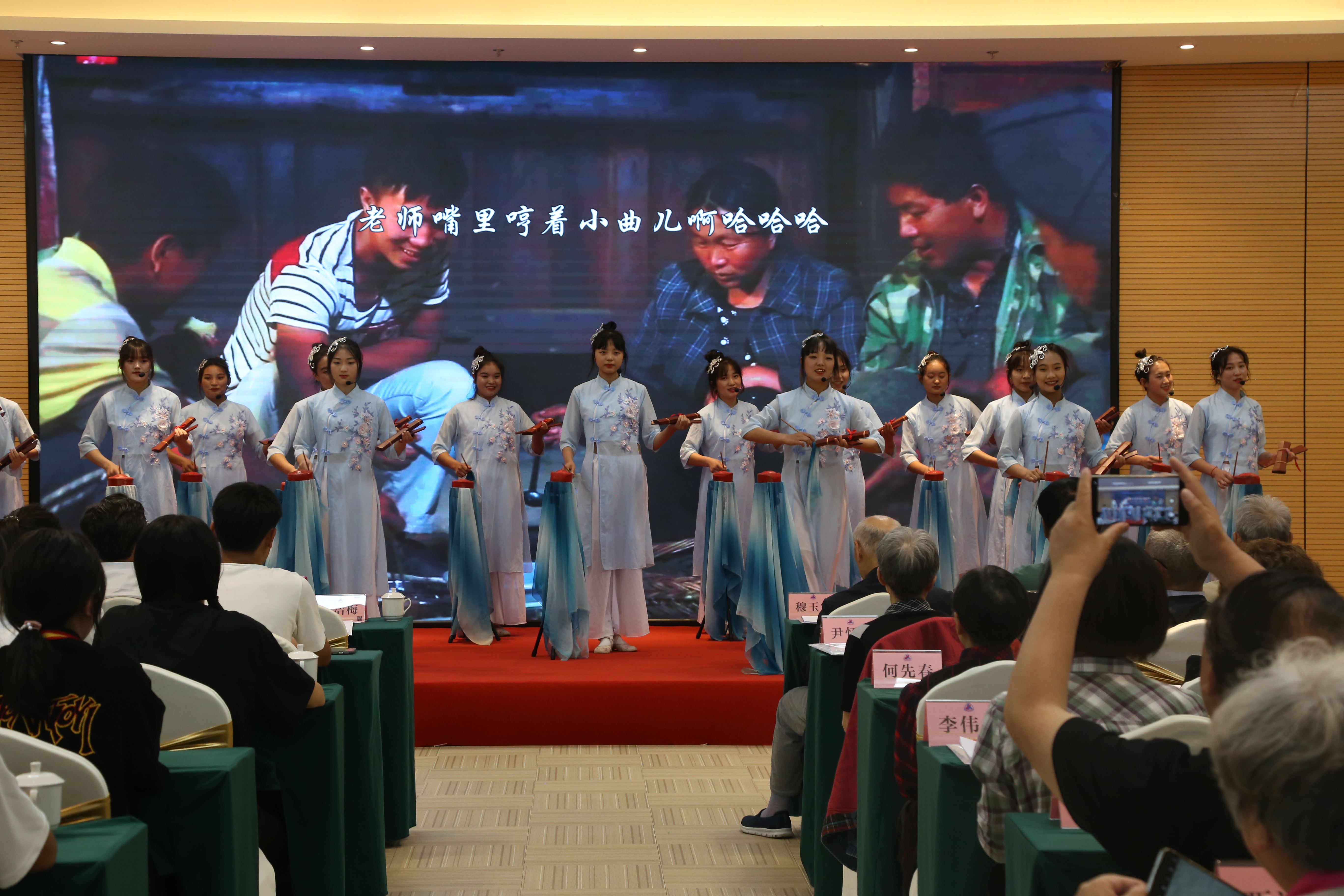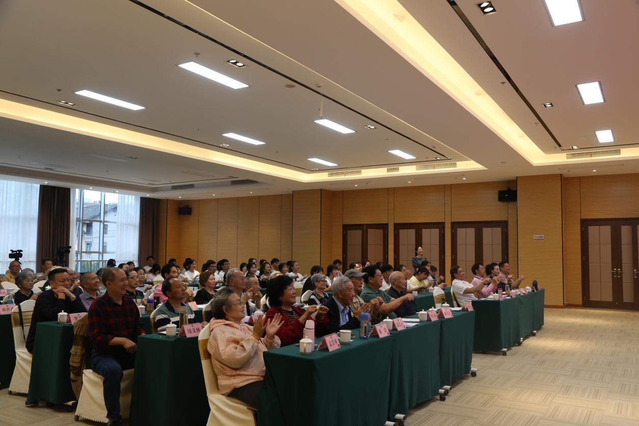 学校高职2020级6班学生妥裴琳以《学好党史 练好技能 传承红色基因》为题,为老同志们进行了演讲。2019级学前教育专业的学生们为老同志们表演四川戏曲“清音”原创节目《情暖成长路》,受到了大家交口称赞,还有很多老同志拿起手机,拍摄演出的片段留待欣赏。