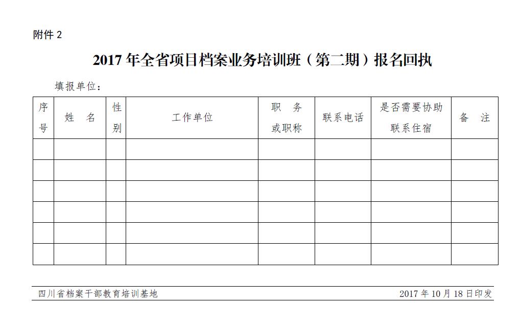 关于举办2017年全省项目档案业务培训班(第二期)的通知