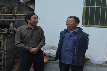 徐宏(左一)与贫困户罗元平亲切交谈
