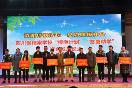雅安市慈善总会秘书长韩峰伟讲话仪式由学校党委副书记、副校长张其可主持,在奏唱国歌声中拉开帷幕。学校副校长童以鸿通报了“授渔计划”“慈善助学”资金资助情况:截止目前,学校在校学生2680人中949人参加了“授渔计划”,共享受资助款569.4万元;65人参与“雅安慈善助学扶贫”项目,共享受资助款50.4万元。随后,韩峰伟、孙凤玲和学校领导为“授渔计划”和“雅安慈善助学扶贫”项目受资助学生代表发放了资助金。受资助学生带来了《感恩的心》手语歌表演。