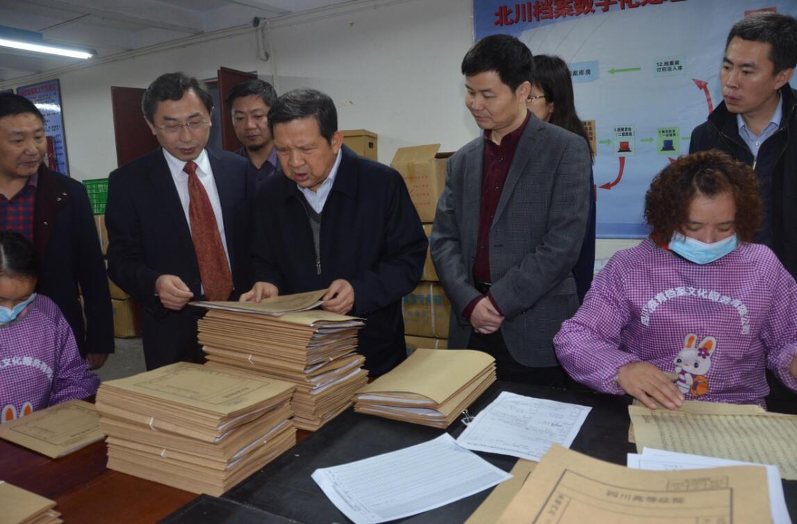 调研中,胡旺林一行先后察看了学校根雕实训室、3D打印实训室、大礼堂、档案管理专业实训基地、北川档案抢救中心、继续教育大楼等,详细了解了学校灾后重建、教育教学、学校管理等情况。