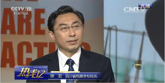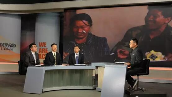 中华职业教育社副总干事杨农(左2)、四川省档案学校校长徐宏(左3)、央视特别评论员张斌(左1)参与今日节目直播,王筱磊(右1)主持节目。
