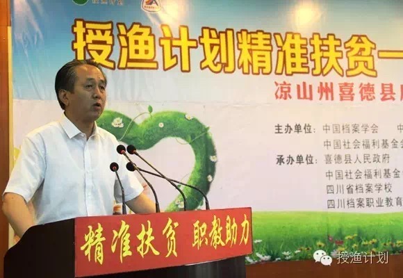 2016年6月19日,“授渔计划精准扶贫一帮一助学行动”在凉山州喜德县启动。喜德县中学的阿育加加摸、马海阿甲等十多名初中毕业生,作为“授渔计划精准扶贫一帮一助学行动”的受助学生代表到场。2016年该行动将在喜德县帮助300名贫困学生到四川省档案学校读书,两年学习期间在国家“9+3”大小凉山救助项目的基础上为每人再提供6000元的助学金,帮助其完成中等职业教育,在此基础上继续资助学生用三年时间完成成人大专教育,并实现有序实习和就业。