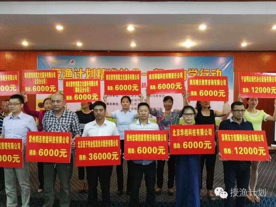 北京量子伟业信息技术股份公司等18家爱心家企业现场捐款15万余元,一帮一资助了25名大凉山喜德县贫困学生到四川省档案校上学,并倡议、呼吁更多的爱心企业参与捐资助学、参与到授渔计划精准扶贫一帮一助学行动中来。
