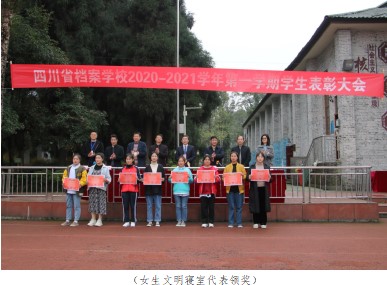 3月12日中午,四川省档案学校在操场隆重举行学生表彰大会,对2020-2021学年第一期表现优异的集体和个人进行表彰。党委书记、校长徐宏,副校长童以鸿,党委副书记、纪委书记李富民,教务科科长兼招就办主任王三刚,学生科科长郑术兵,办公室主任沈括,大小凉山彝区“9+3”驻校管理教师负责人邱华福,学生科副科长罗莉出席本次大会,2019级、2020级各班及班主任共2000余人参加。表彰大会由副校长童以鸿主持。