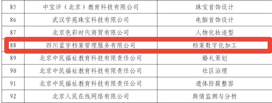 四川省档案学校为了做好档案管理专业的“学历证书+职业技能等级证书”制度试点工作,2020年7月组织校办企业――四川蓝宇档案管理服务有限公司向教育部申报了“档案数字化加工”职业技能等级证书。经教育部组织专家遴选,通过国务院职业教育工作部联席会议审定,2020年12月31日,四川蓝宇档案管理服务有限公司成为了第四批职业教育培训评价组织,“档案数字化加工”职业技能等级证书成为了第四批1+X证书。至此,“档案数字化加工”职业技能等级证书成为了档案行业第一个也是目前唯一的一个国家认定和认可的技能证书。