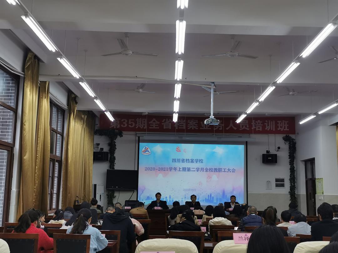 10月11日下午,四川省档案学校召开2020-2021学年上期第二学月全校教职工大会。