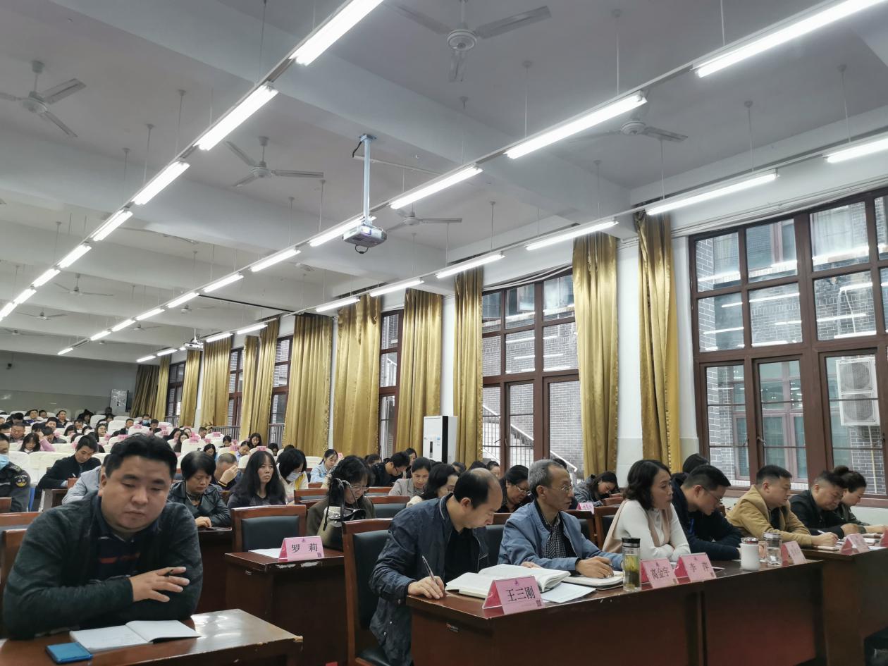 会议由副校长童以鸿主持,全校200余名教职工参加。