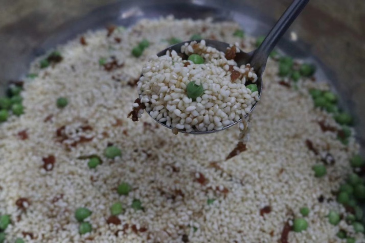 9:30,学生陆续来到食堂,学校相关领导、班主任、“9+3”驻校干部已在食堂等候,原料齐备,师生齐上阵。