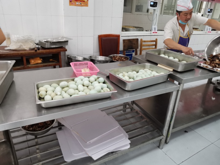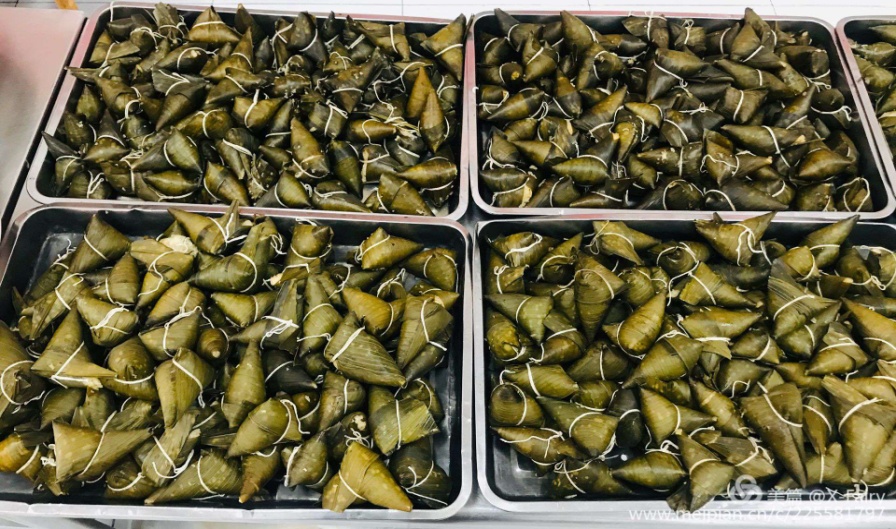 中午时分,飘香的粽子出锅了,咱们过节了!除了粽子,学校还准备了咸鸭蛋、烤鸭、饮料、水果。