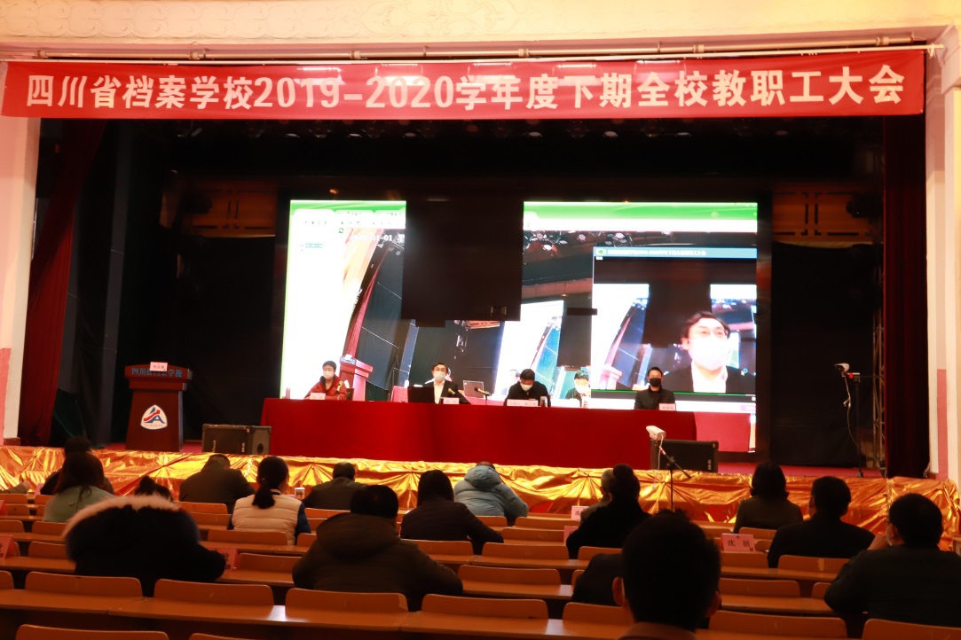 3月17日下午,四川省档案学校召开2019-2020学年下期第一次教职工大会,总结新冠肺炎疫情发生以来学校的防控工作和第一学月相关工作,研究部署疫情期间防控工作和新学期主要工作。会议利用学校自己的智慧校园平台,采取现场及视频会议的形式在学校大礼堂召开。