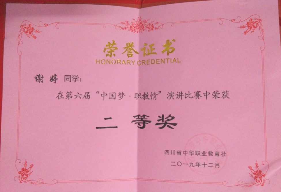 12月6日,由四川省中华职业教育社主办的第六届“中国梦・职教情”演讲比赛在德阳举行。来自全省17所中职学校的17名选手齐聚一堂,开展声音与激情的较量。经过激烈的角逐,四川省档案学校彝族学子谢婷获得了大赛二等奖。