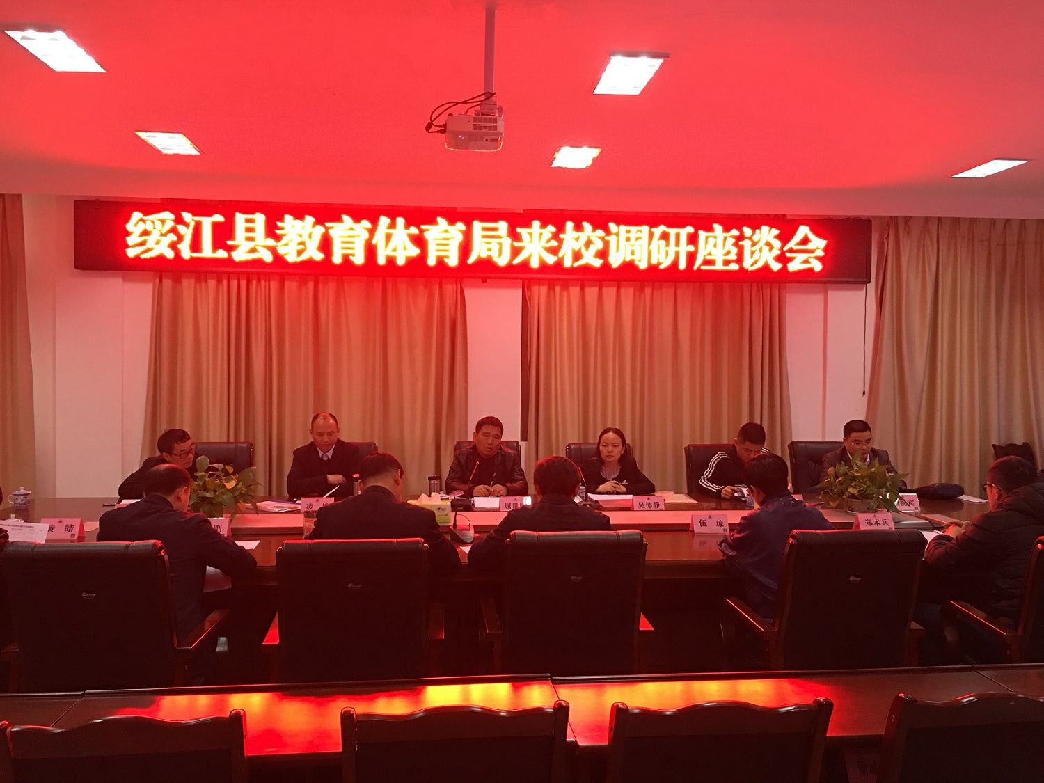 3月25日,绥江县教育体育局副局长屈世康一行7人就2019年职业教育扶贫协作事宜来我校参观考察。学校党委书记、校长徐宏,副校长童以鸿、伍琼陪同考察。