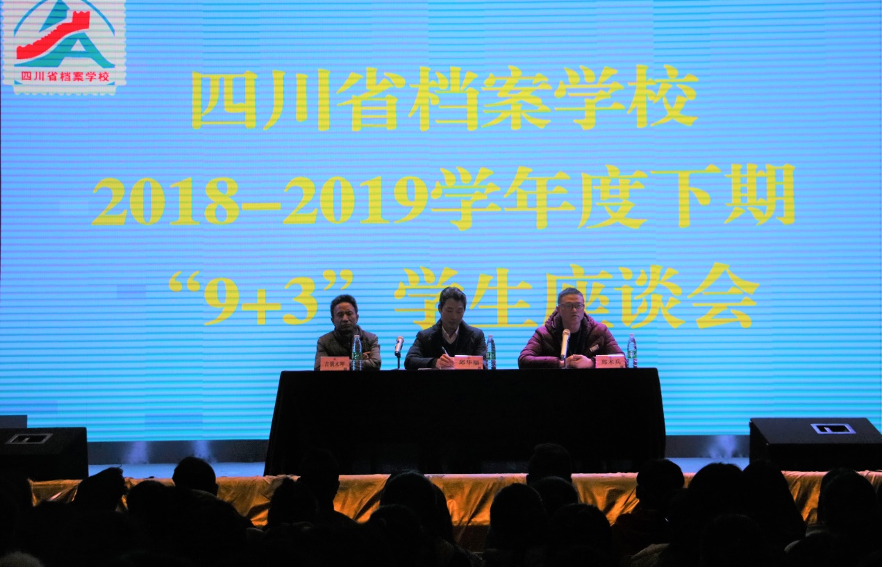 3月14日下午,四川省档案学校在大礼堂举行了2018-2019学年度下期“9+3”学生座谈会。