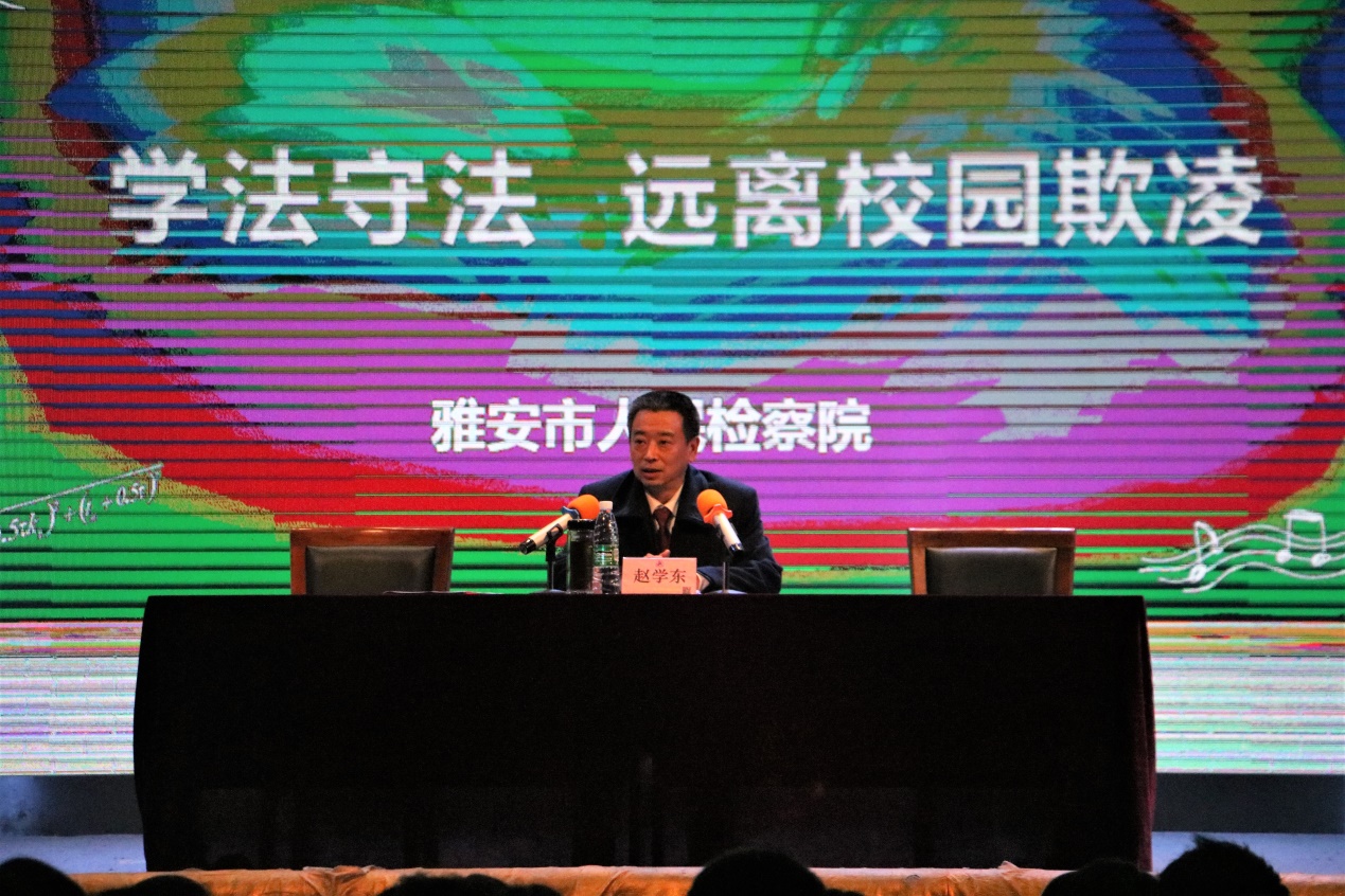 2月27日晚,四川省档案学校举行法治副校长聘任仪式暨法制教育讲座。雅安市人民检察院党组成员、副检察长赵学东受聘担任学校法治副校长,并以《学法守法 远离校园欺凌》为主题,为同学们作讲座。