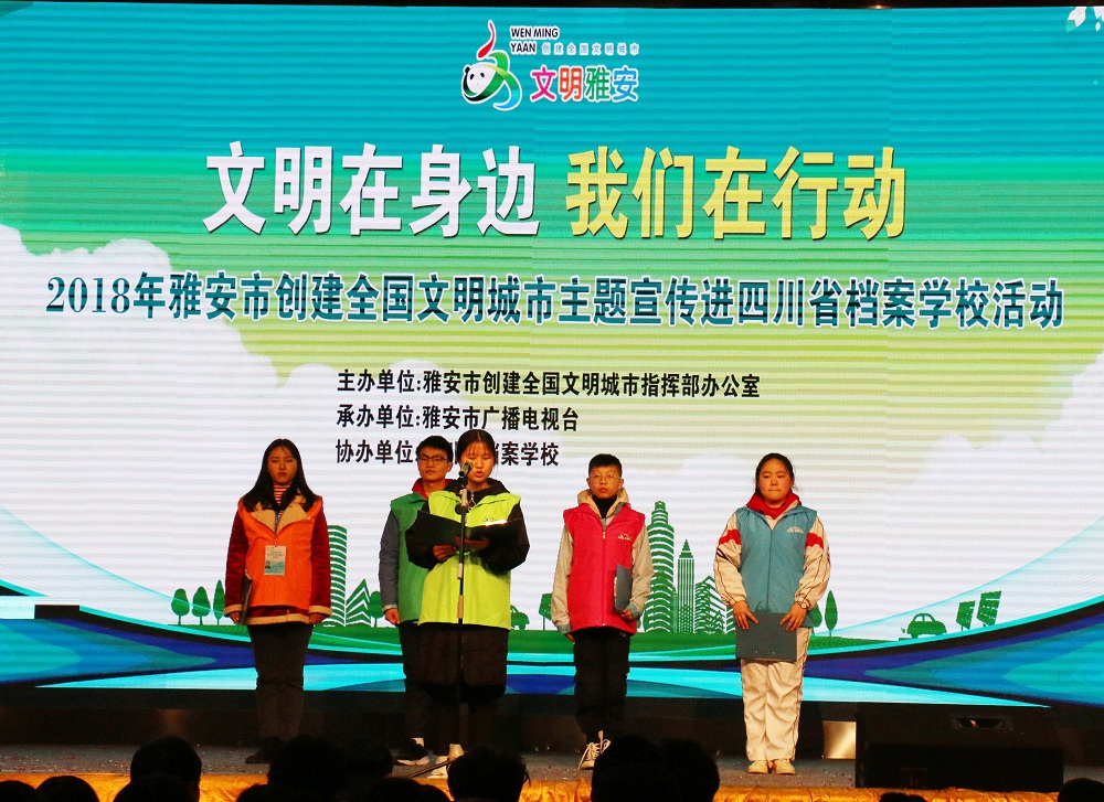“让我们携起手来一起创建全国文明城市,因为――我是雅安人,我爱雅安城,我愿为雅安添光彩……”