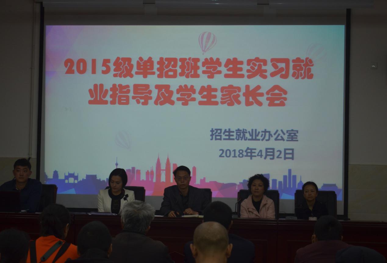 4月2日上午10:00,我校组织召开2015级单招班学生实习就业指导及学生家长会。