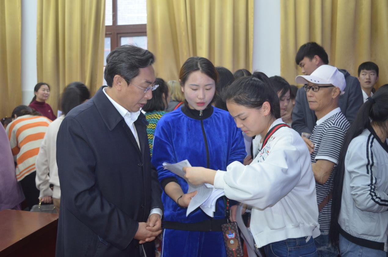 学校党委书记、校长亲临现场指导实习就业工作,并与学生亲切交谈,与家亲密沟通、共同谋划孩子们的美好未来。