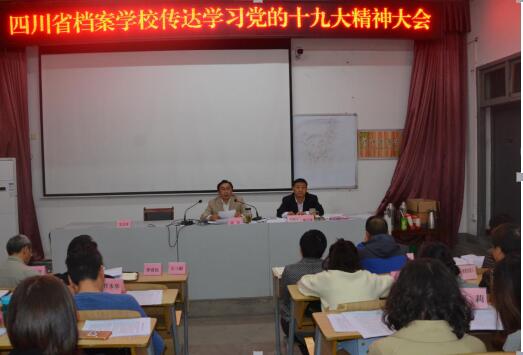大会上,全校教职工学习贯彻了四川省传达学习党的十九大精神大会要求、雅安市传达学习党的十九大精神大会的要求、省档案局传达学习党的十九大精神大会的要求,并安排部署了全校学习宣传贯彻工作。校党委书记、校长徐宏出席会议并讲话。