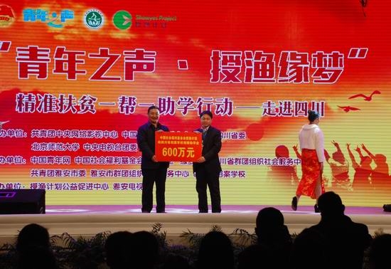 本次公益活动,由共青团中央网络影视中心、中国社会福利基金会、共青团四川省委、北京师范大学、中央电视台团委联合主办,中国青年网、中国社会福利基金会授渔基金、四川省群团组织社会服务中心、共青团雅安市委、雅安市群团组织社会服务中心、四川省档案学校等单位承办。“青年之声・授渔缘梦”精准扶贫一帮一助学行动,将在四川省资助1000名孤儿、留守儿童和贫困学生,2年时间内为每人每年提供3000元助学金。在这其中,包括了500名雅安地震灾区学生。