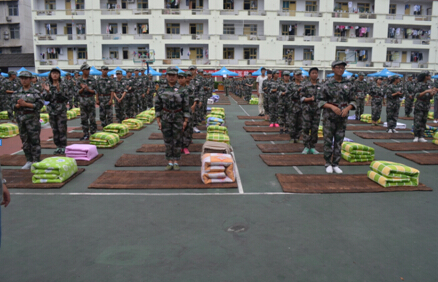 为了充分展示我校学子的青春风采,丰富军训生活,提高学生内务整理水平。2015年9月3日下午,我校2015级新生军训叠被子比赛在校塑胶操场举行。校党委委员、学生科科长王三刚、学生科副科长黄宗珍观看了比赛。本次比赛共有800余名学生参加。