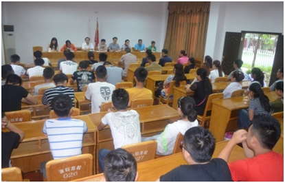 校长徐宏在会堂主持召开与文秘(安保方向)专业的家长和学生座谈会,党委副书记、副校长张其可,教务科、学生科、总务科、招就办、校办、胡坤柔道俱乐部等相关负责人陪同参会。