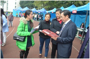 举行了2014年校园招聘会,四川省档案局副巡视员朱虹、四川省档案学会秘书长张洁梅在学校党委书记、校长徐宏的陪同下考察了整个招聘会现场。