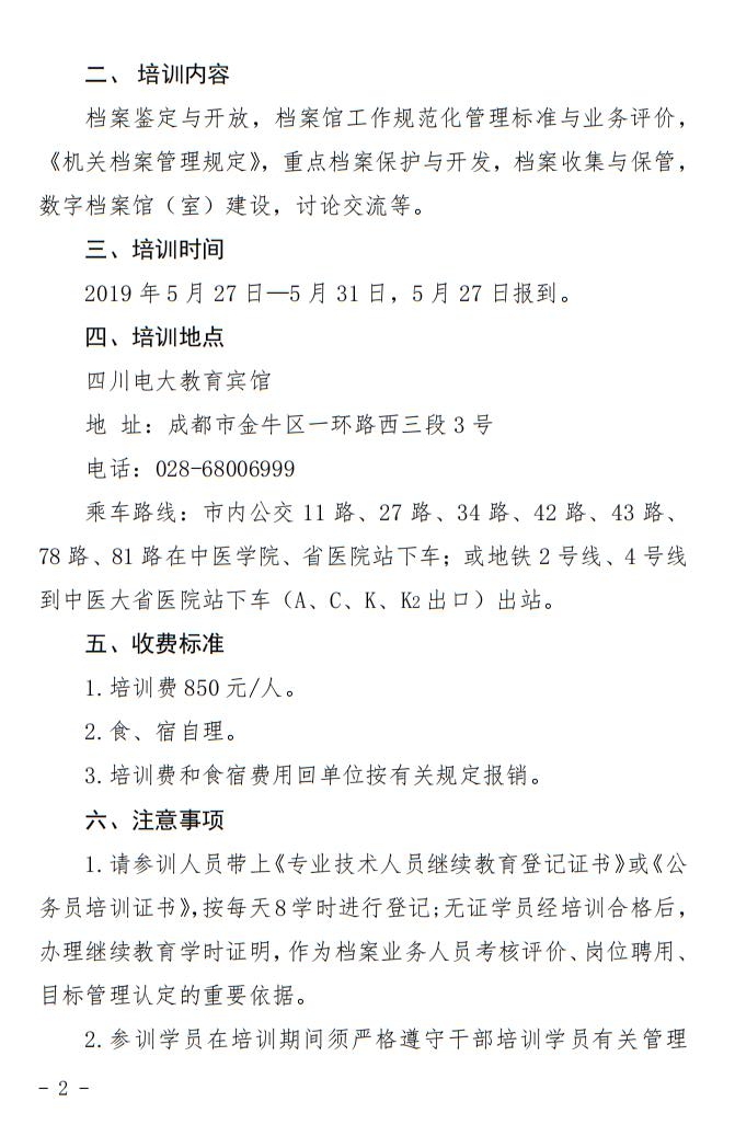 关于举办2019年全省档案馆基础业务培训班的通知
