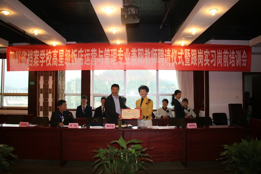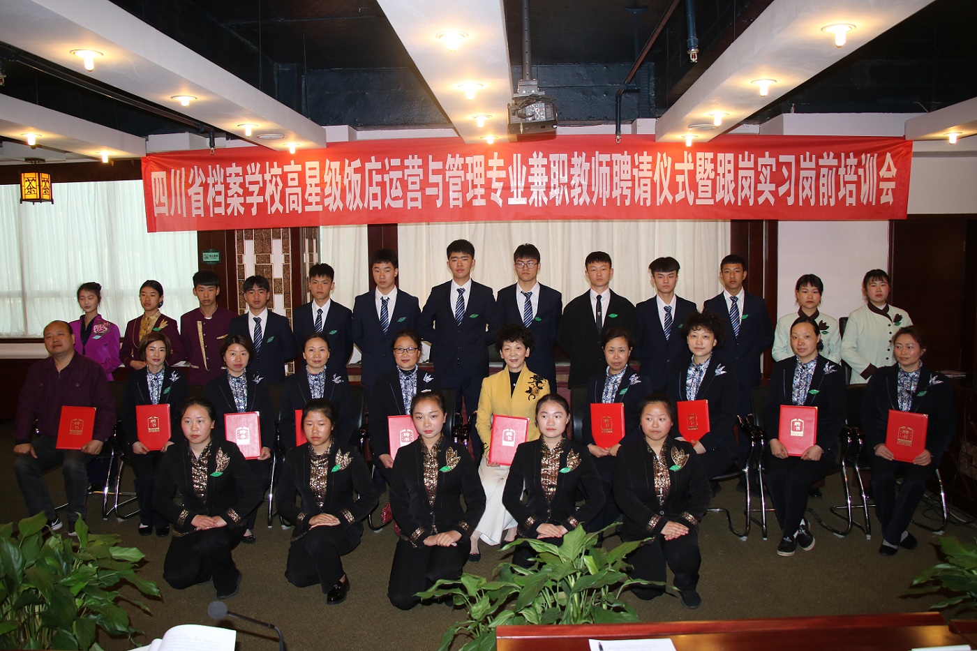 2019年4月15日,我校在高星级饭店运营与管理专业校外实训基地――雅安市西康大酒店有限公司,举行了该专业企业兼职顾问、兼职教师的聘请仪式暨跟岗实习岗前培训会。