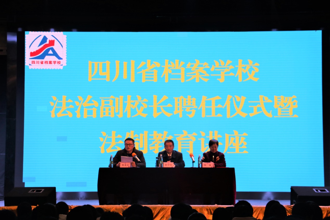 2月27日晚,四川省档案学校举行法治副校长聘任仪式暨法制教育讲座。雅安市人民检察院党组成员、副检察长赵学东受聘担任学校法治副校长,并以《学法守法 远离校园欺凌》为主题,为同学们作讲座。