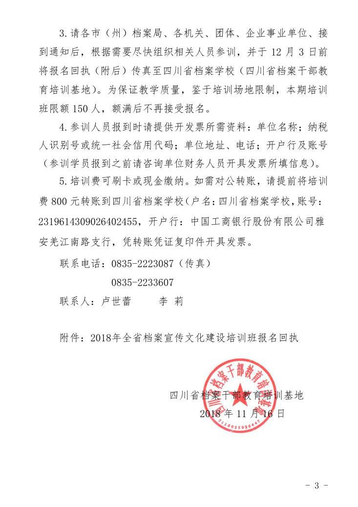 四川省档案干部教育培训基地关于举办2018年全省档案宣传文化建设培训班的通知