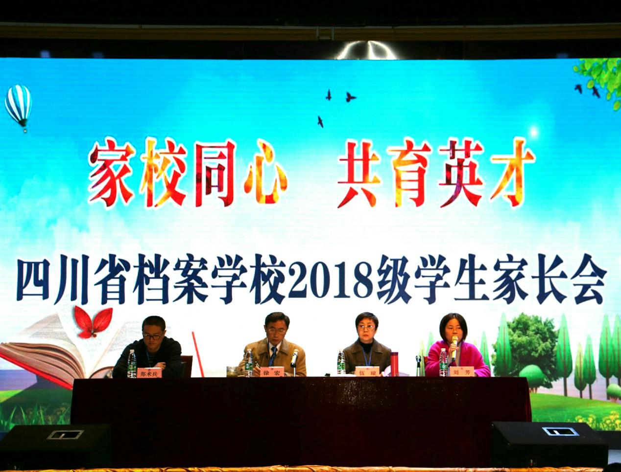 2018年10月19日,四川省档案学校在大礼堂举行了2018级新生家长会。学校党委书记、校长徐宏出席家长会,500多名在雅安的学生家长参加会议。