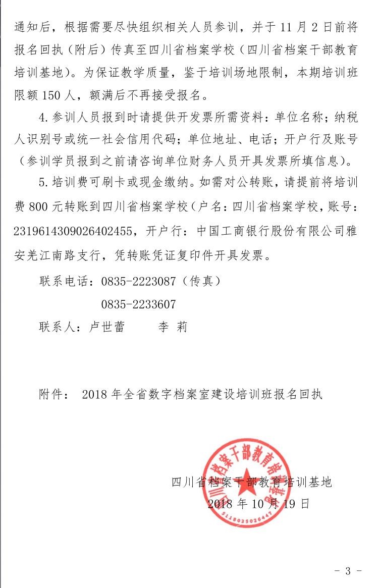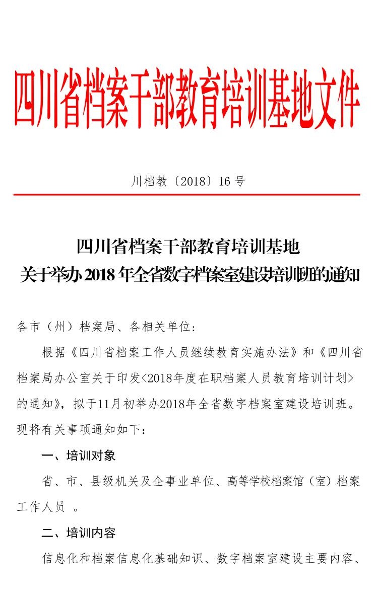 四川省档案干部教育培训基地关于举办2018年全省数字档案室建设培训班的通知