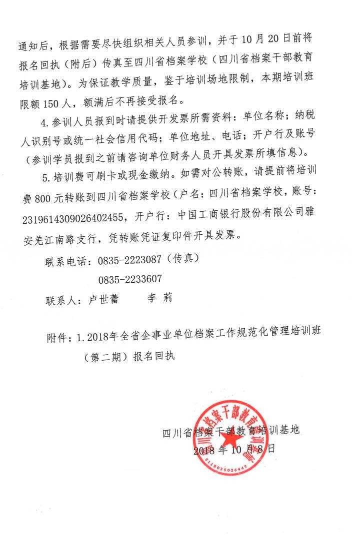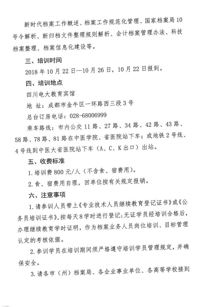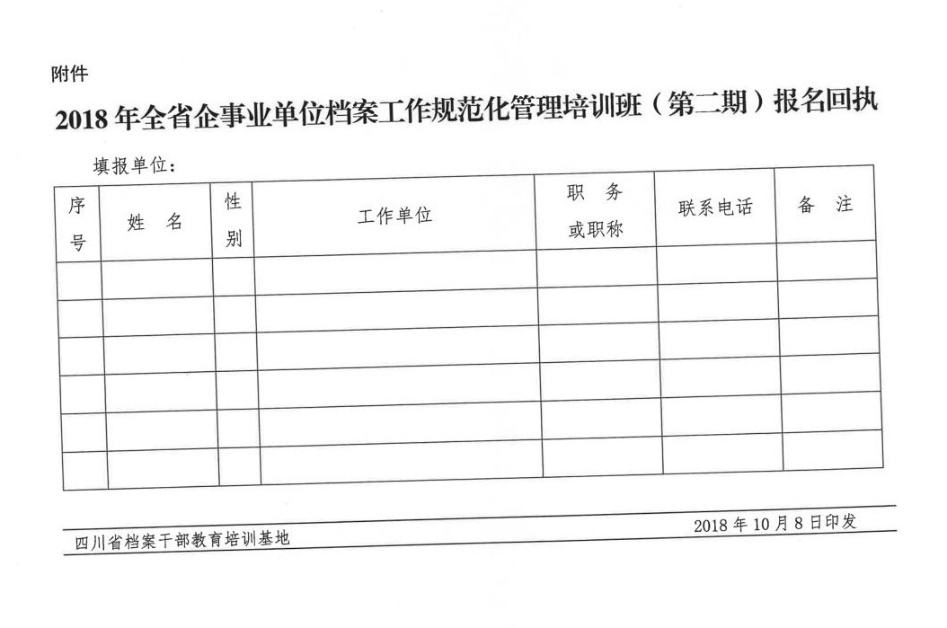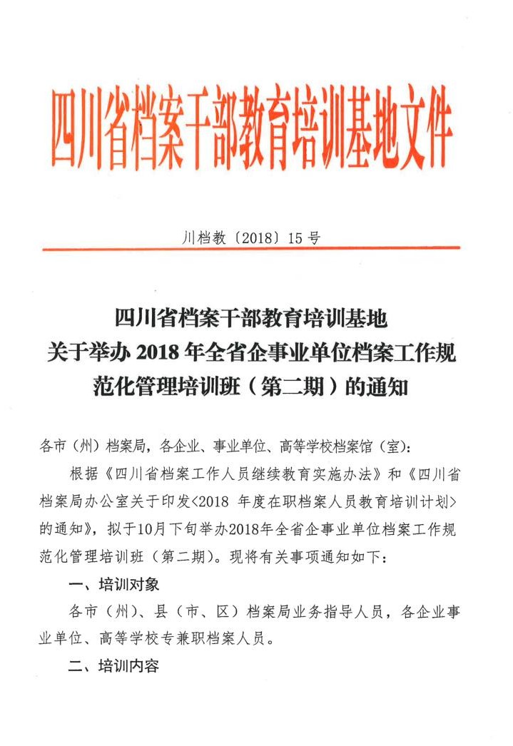 四川省档案干部教育培训基地关于举办2018年全省企事业单位档案工作规范化管理培训班(第二期)的通知