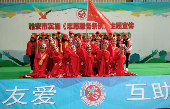 2017年12月4日,雅安市实施《志愿服务条例》主题宣传暨“绿美雅安・文明骑行”志愿服务活动在市区万达广场举行。我校20名学生志愿和13名学生演员参加了此次活动。