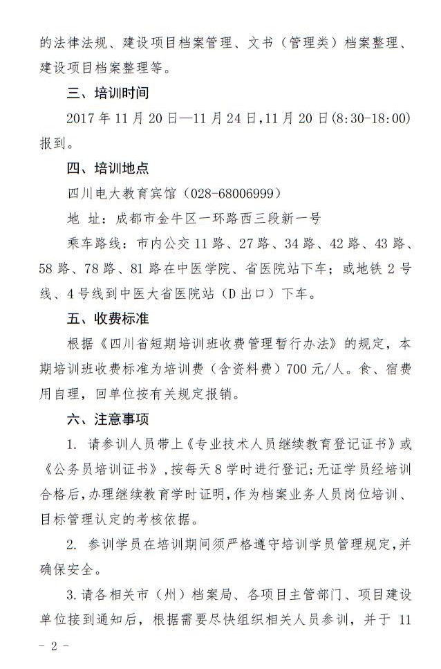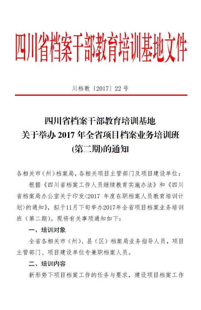 关于举办2017年全省项目档案业务培训班(第二期)的通知