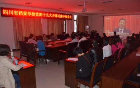 2017年10月18日上午9时,四川省档案学校组织全体党员观看了中国共产党第十九次全国代表大会开幕会直播,并认真聆听了习近平代表第十八届中央委员会向党的十九大所做的报告,全体党员在第一时间学习了解了大会的重要精神。
