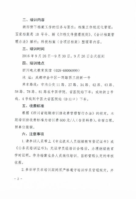 四川省档案学校关于举办全省档案信息化建设(机关)培训班的通知