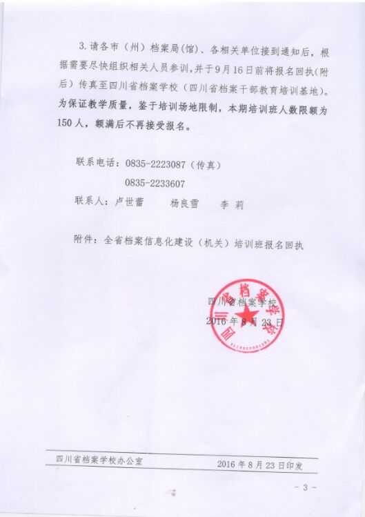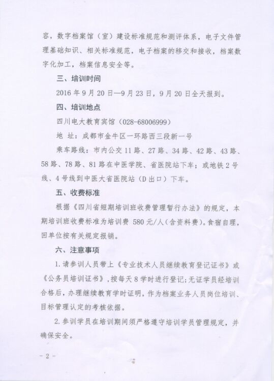 四川省档案学校关于举办全省档案信息化建设(机关)培训班的通知