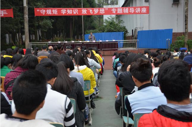 为进一步落实教育部《职业院校管理水平提升行动计划》,提高同学们遵纪守法意识,构建和谐、平安、稳定的育人环境。学校邀请了雅安市原教育局老领导、雅安市关工委法制教育团副团长刘泉金老师为全校师生作了一场关于“守规矩、学知识、放飞梦想”的专题辅导讲座。