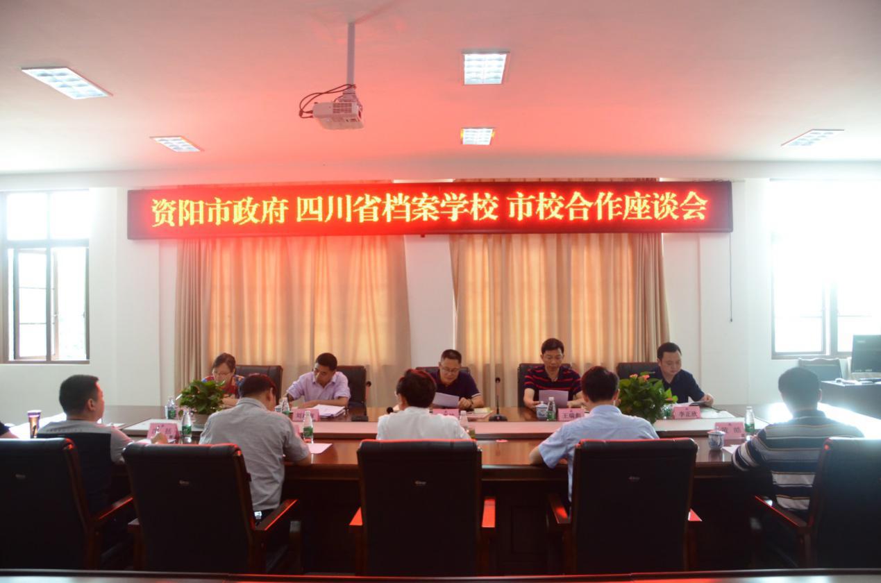 随后,调研组一行与我校举行了市校合作座谈会。会上,徐宏校长从发展规划及档案管理专业的发展上分析我校与资阳市合作的优势,希望得到资阳市政府的支持,把我校建设成在全国都有影响力的实训基地。周齐铭副市长对我校建高职院校提出三点建议:一是要整合校内资源、科学规划,比如整合高职院校所必需的实训基地和创意产业园区;二是要分“两步走”建高职院校,先以培训中心、实训中心、创意产业园的名义逐步建立基地,再升高职院校;三是要重视资金的筹备。最后,徐宏对资阳市相关领导表示感谢。