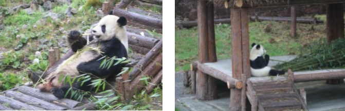如果足够幸运的话,还能看尽熊猫的各种姿态。碰上熊猫觅食的时候,还能一览熊猫津津有味地吃着美味可口的竹子,任由大家拍照。看那憨厚的大熊猫施展它那笨拙的身体,它时而环顾四周的美景,时而陷入深思。即使看到熊猫的背影,那种惬意自然的感受也会油然而生。