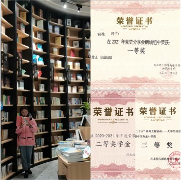也正因为这种坚持,大学期间我从来没有放弃过努力,从入校开始就积极竞选班干部,加入校团委、学生会,培养自己的兴趣爱好,担任川北幼儿师范高等专科学校活动部部长。一直不忘初心,脚踏实地努力奋进。