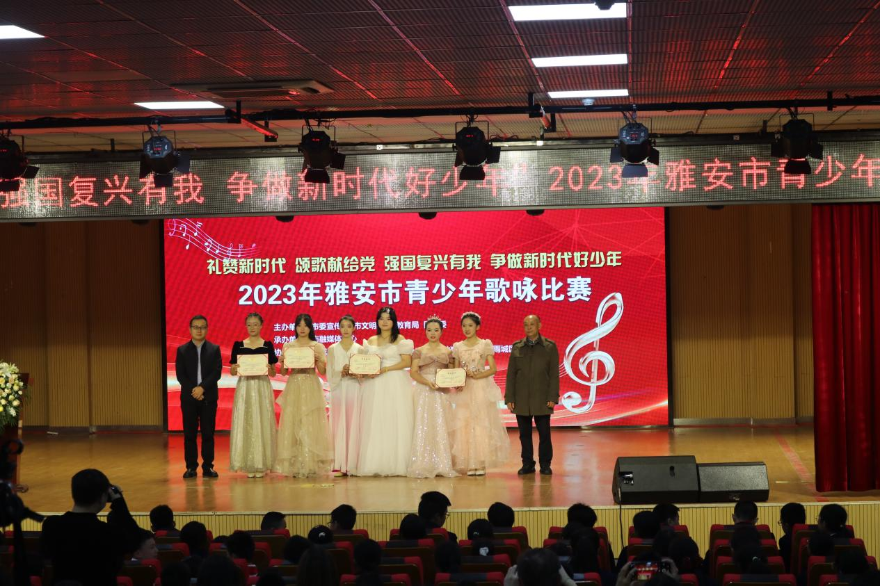 11月15日下午,2023年雅安市青少年“礼赞新时代 颂歌献给党 争做新时代好少年”歌咏比赛在成都实验外国语学校雅安校区隆重举行。经过紧张激烈的角逐,我校高职2021级7班黄思敏同学在众多选手中脱颖而出,荣获中学组二等奖。
