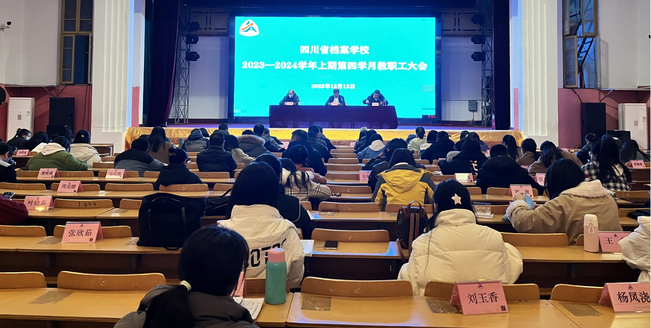 12月12日,四川省档案学校召开2023-2024学年上期第四学月全校教职工大会。党委副书记、校长向晓东出席会议并讲话。副校长童以鸿、王三刚总结安排分管工作。