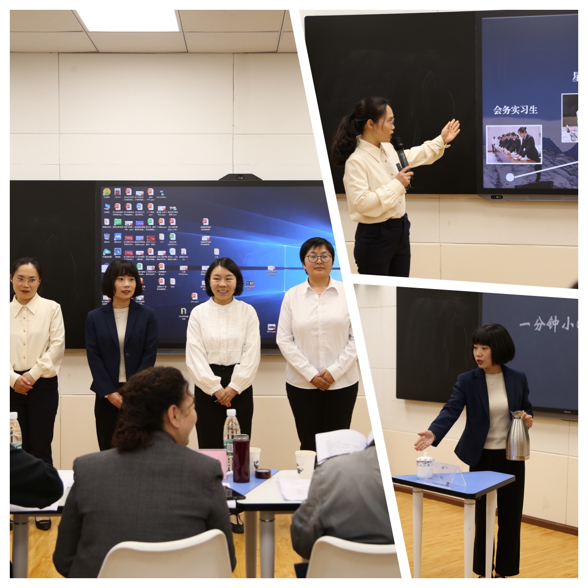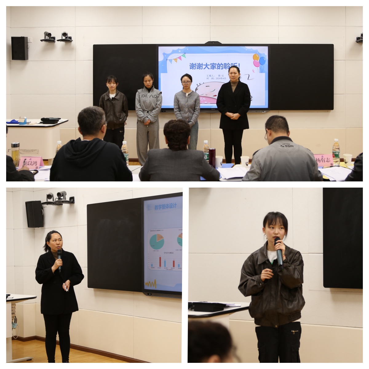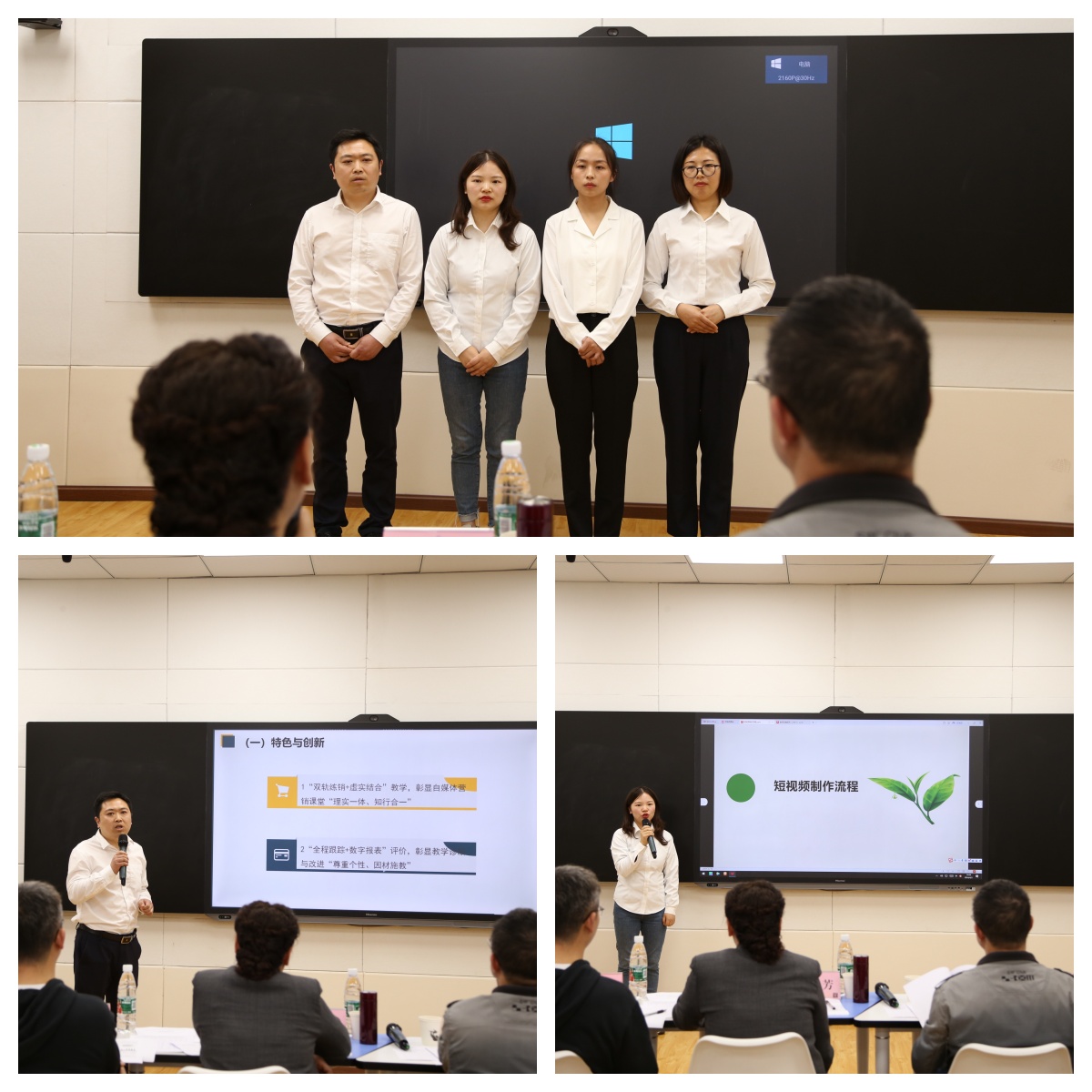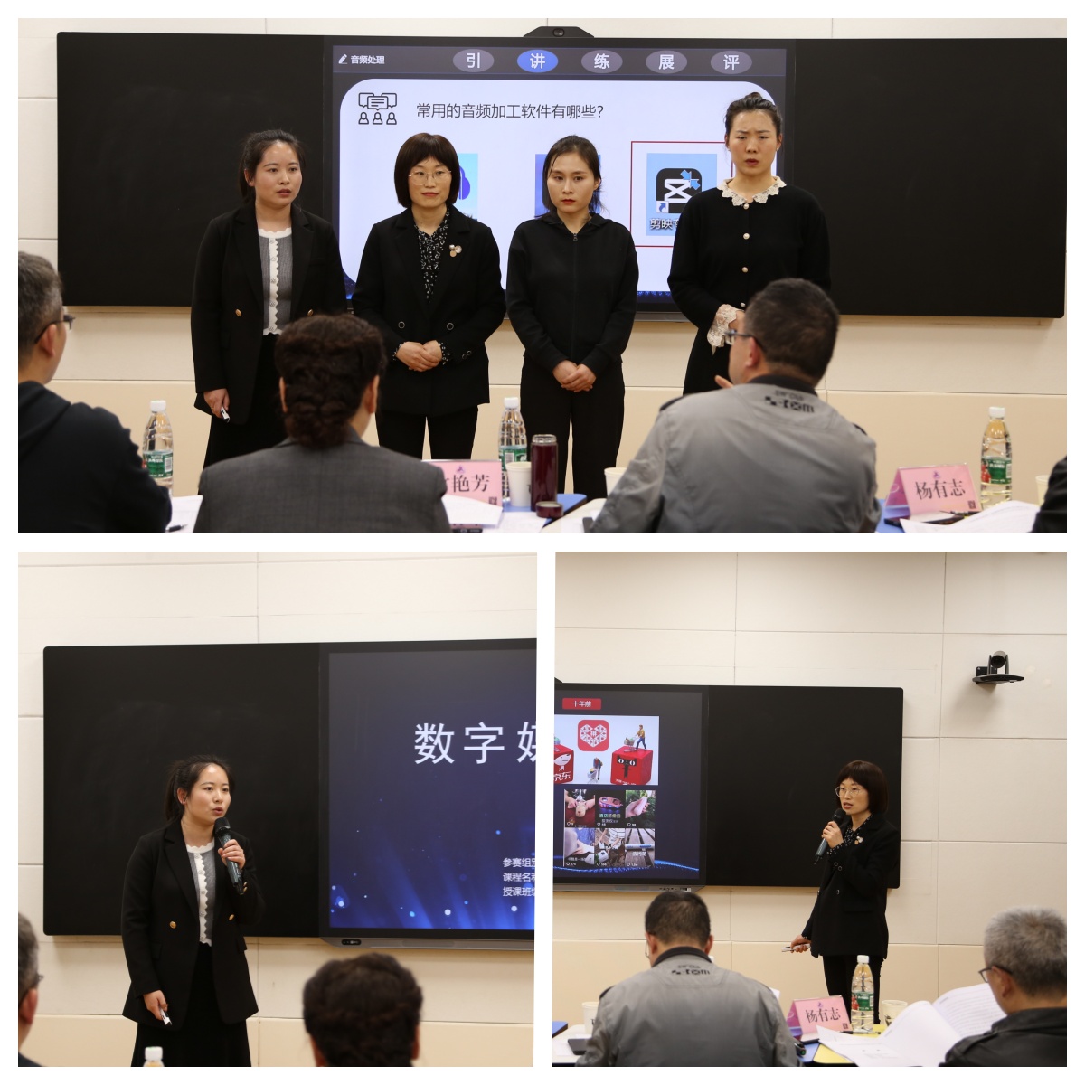 4月3日,学校第三届教师教学能力比赛在综合实训楼录播教室举行,全校11个参赛团队共39名教师参加比赛。